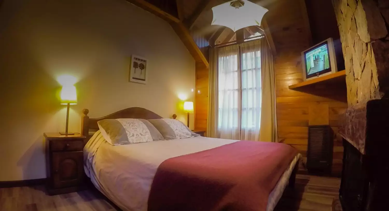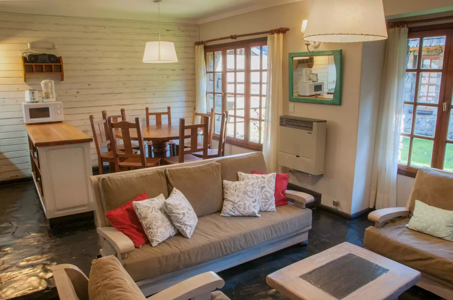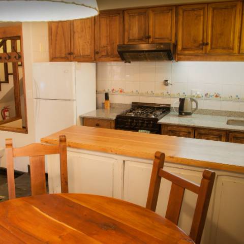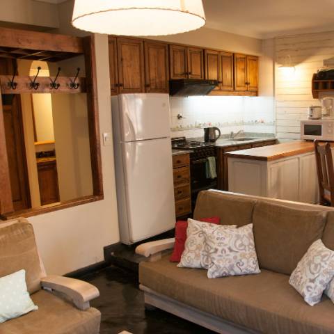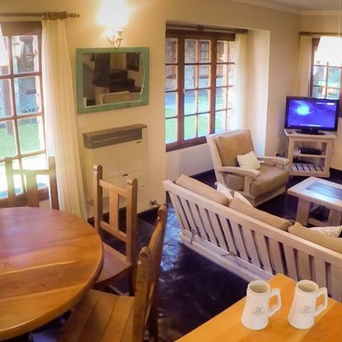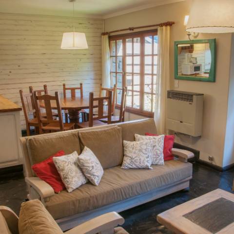 - First floor: Kitchen-dining room integrated with the living room, balanced draft heater, fireplace, 32" LCD, and a full bathroom with shower.